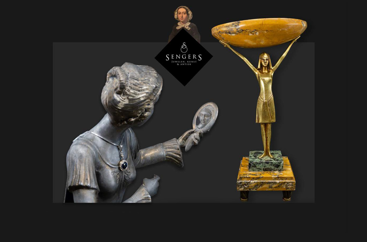 Tinnen beeldje uit de Art Nouveau periode